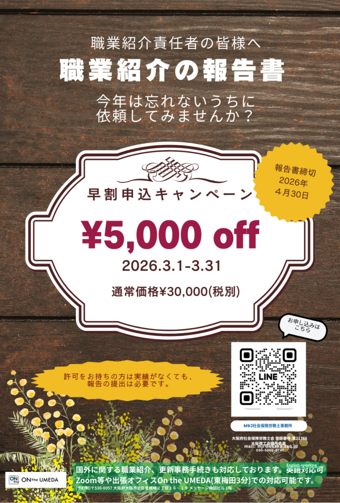 2026年3月7日 / 最終更新日時 : 2026年3月7日 Asaki0107 未分類 令和7年度職業紹介報告書のお申込みはこちらから。 mjr@osaka.zaq.jp LINEが起動しない場合は、こちらのメールにてお問い合わせください。 Follow me! FacebookXBlueskyHatenaPocketCopy コメントを残す コメントをキャンセルメールアドレスが公開されることはありません。 ※ が付いている欄は必須項目ですコメント ※ 名前 ※ メール ※ サイト 次回のコメントで使用するためブラウザーに自分の名前、メールアドレス、サイトを保存する。
